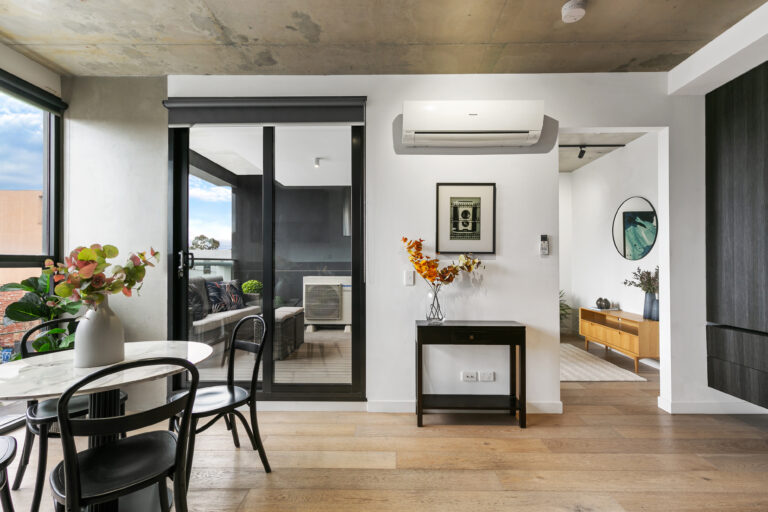 This light-filled apartment is superbly located with a tram stop outside, and minutes from renowned East Brunswick restaurants and cafes. Comprising a living/dining room open to a well-equipped kitchen and covered entertaining terrace, two double bedrooms (one with terrace access), stylish fully-tiled bathroom with walk-in shower, plus euro laundry. Including lift and video entry, this appealing residence features engineered oak floors, concrete ceilings, custom storage, split-system air conditioning and double glazing.
