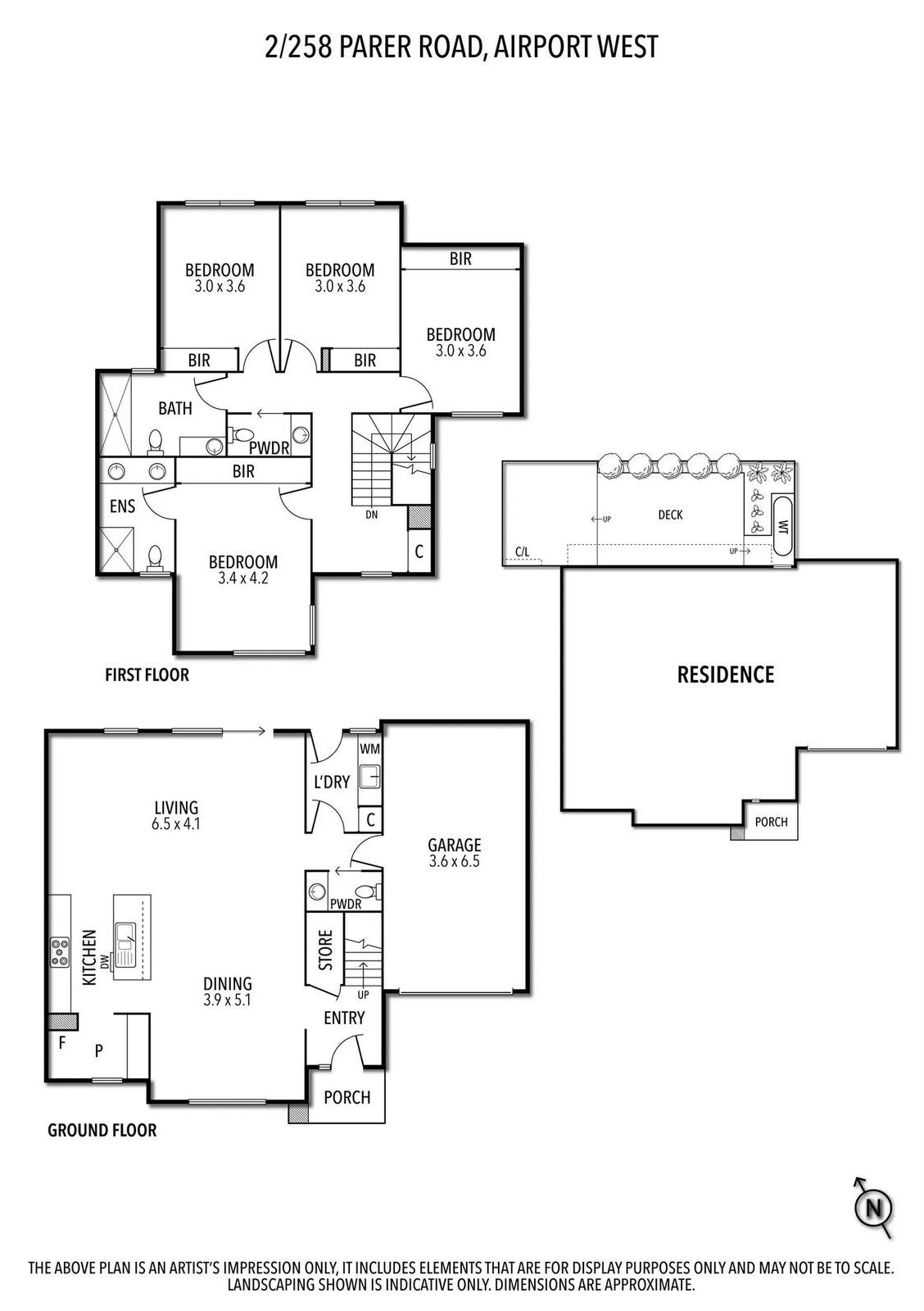 The heart of the home is a vast open-plan living and dining zone that flows seamlessly to the kitchen a genuine showpiece featuring a stone waterfall island bench, sleek white gloss cabinetry reaching ceiling height, stainless steel appliances, and a textured geometric feature splashback that adds character without trying too hard. Polished hardwood timber floors carry throughout the ground floor, and sliding glass doors open directly onto a private alfresco deck and low-maintenance rear yard with artificial lawn a perfect setup for year-round entertaining.